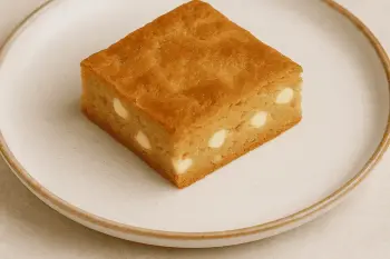 Klasik brownie’nin beyaz çikolatalı ve altın renkli hali....